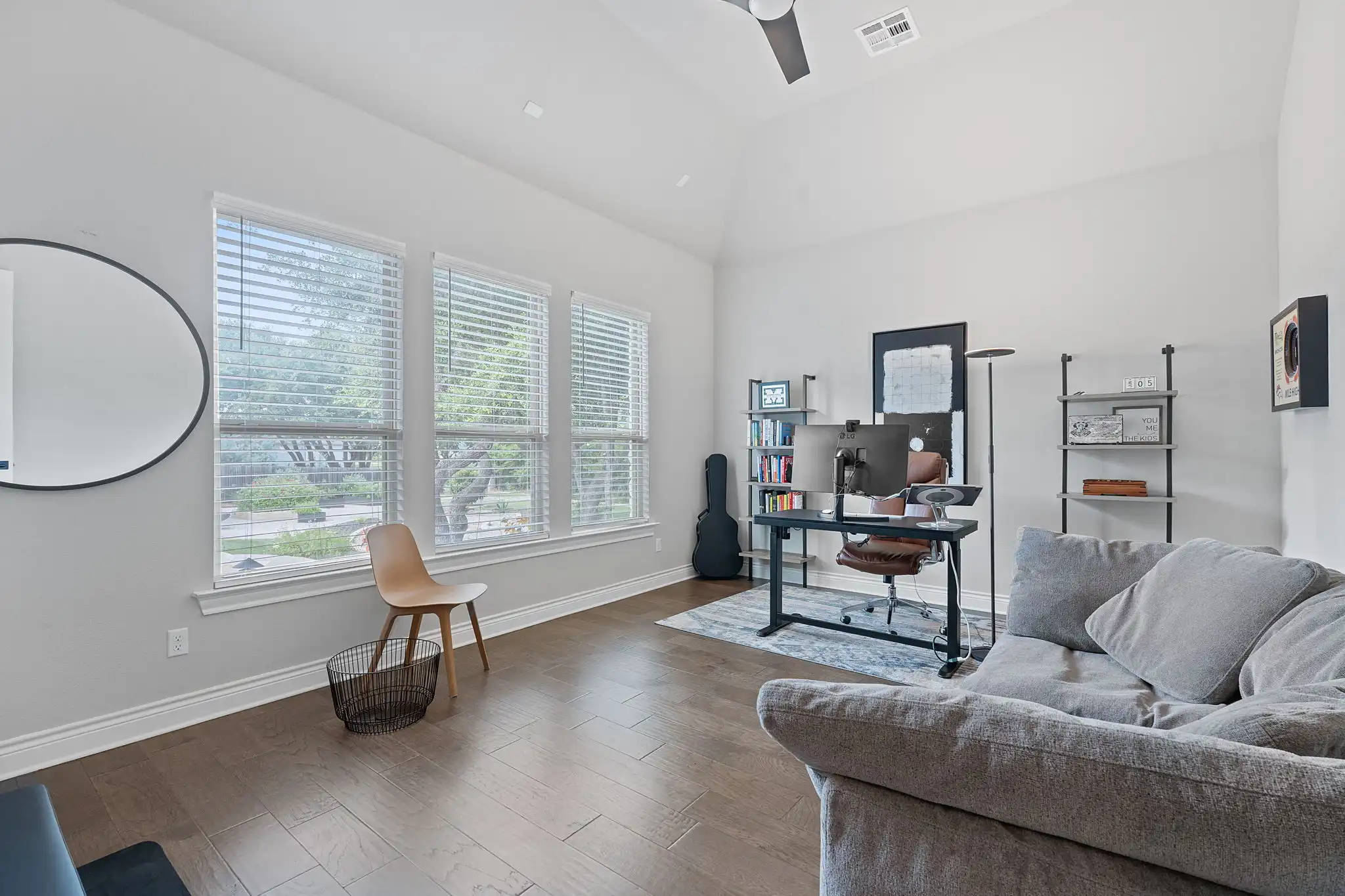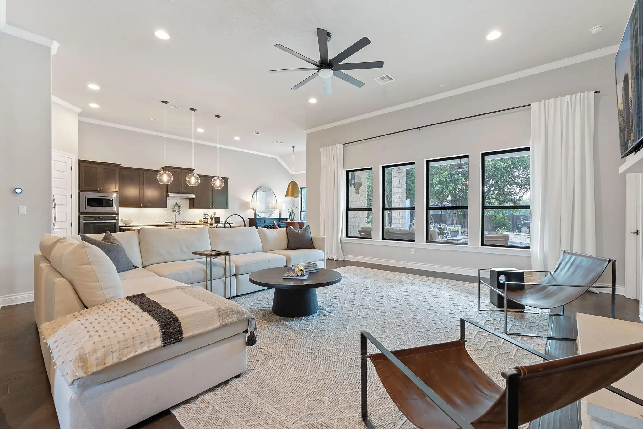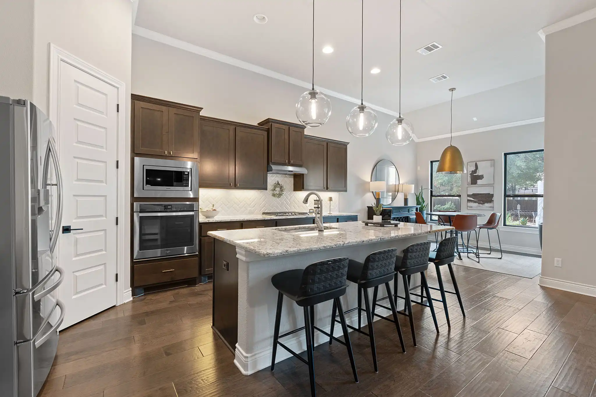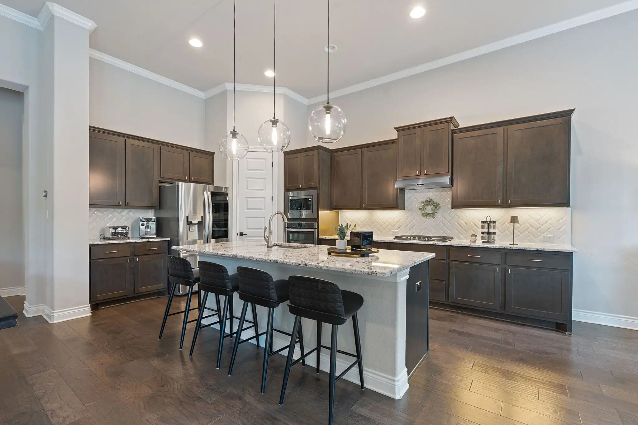 The chef-inspired kitchen features granite countertops, stainless steel appliances, and an oversized island with pendant lighting that overlooks the living area—perfect for entertaining. Multiple flex spaces offer incredible versatility, including a moody upscale lounge with coffered ceiling and a bright home office with vaulted ceilings. The private main suite boasts his and hers walk-in closets and a spa-inspired ensuite, while the three additional bedrooms all feature walk-in closets—one with a full ensuite and the others sharing a Jack-and-Jill bath, giving everyone their own space to get ready.