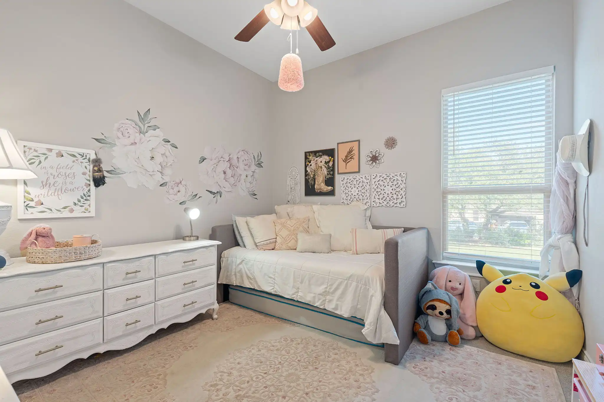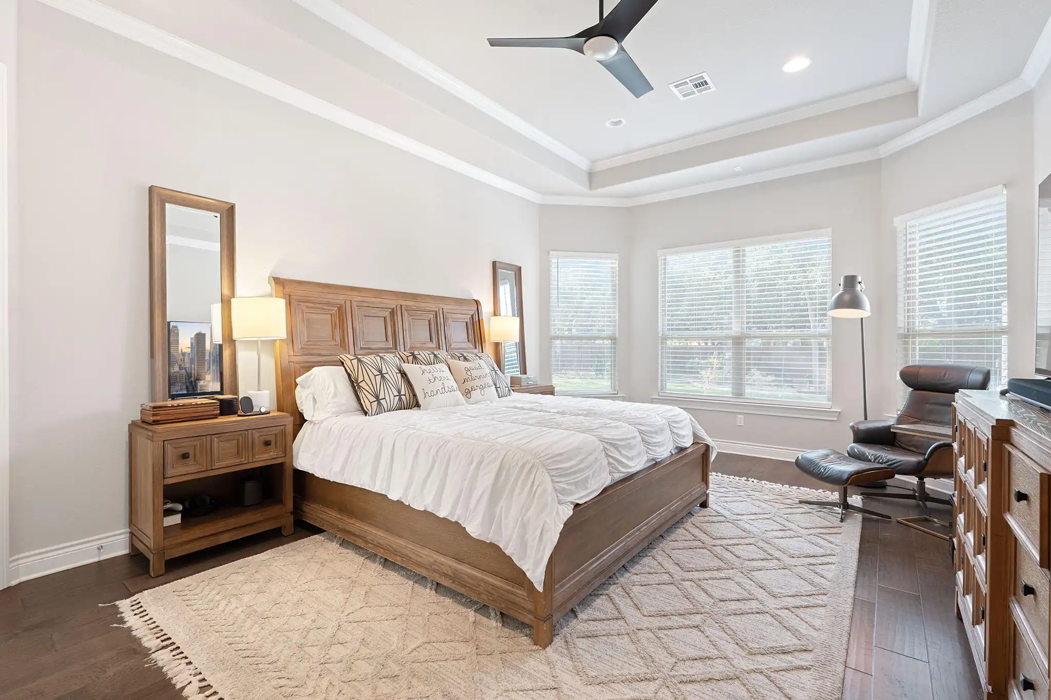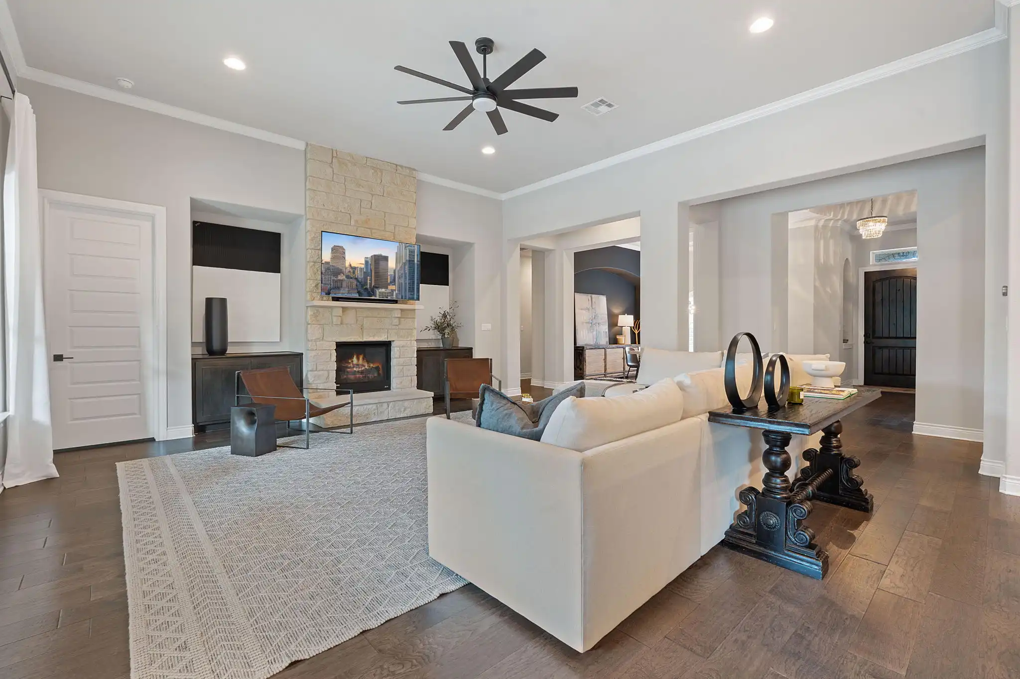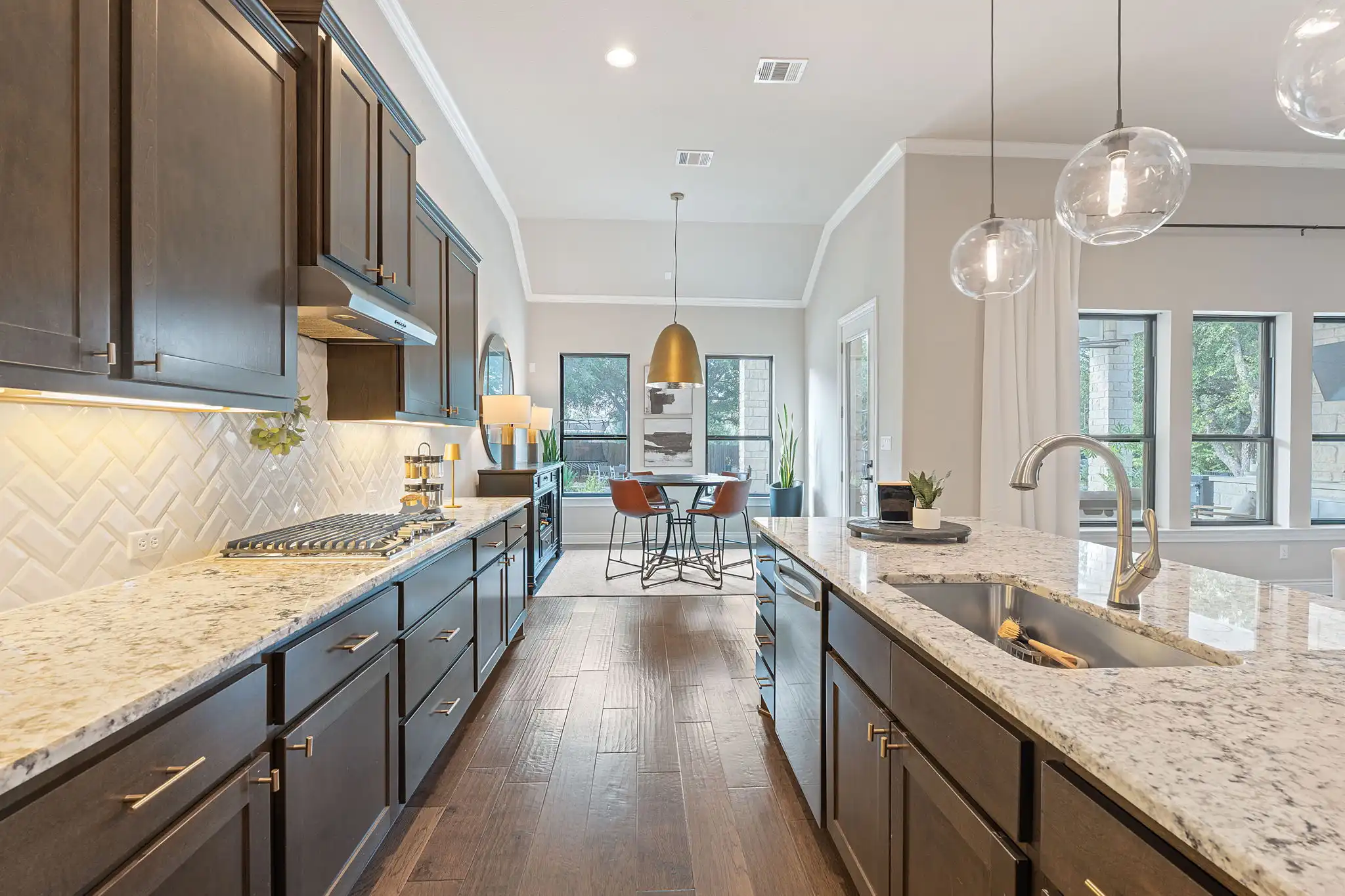 The chef-inspired kitchen features granite countertops, stainless steel appliances, and an oversized island with pendant lighting that overlooks the living area—perfect for entertaining. Multiple flex spaces offer incredible versatility, including a moody upscale lounge with coffered ceiling and a bright home office with vaulted ceilings. The private main suite boasts his and hers walk-in closets and a spa-inspired ensuite, while the three additional bedrooms all feature walk-in closets—one with a full ensuite and the others sharing a Jack-and-Jill bath, giving everyone their own space to get ready.