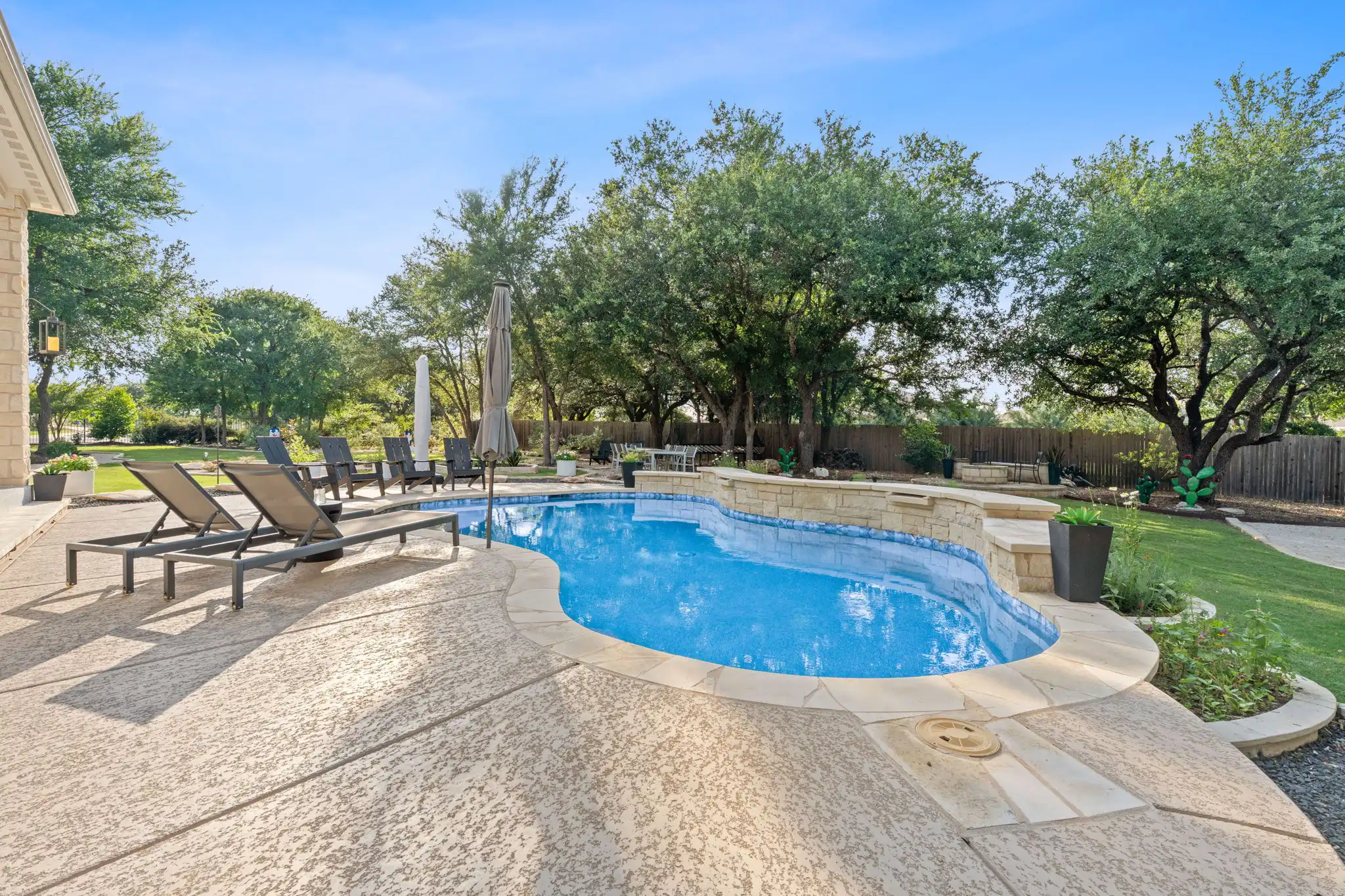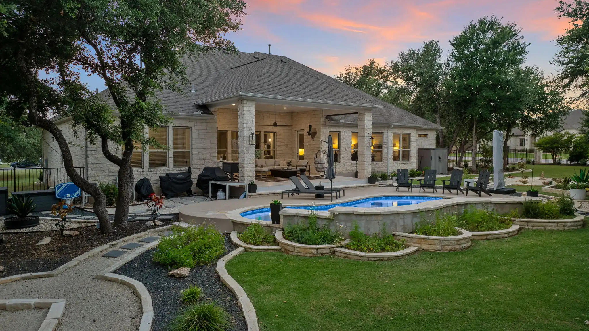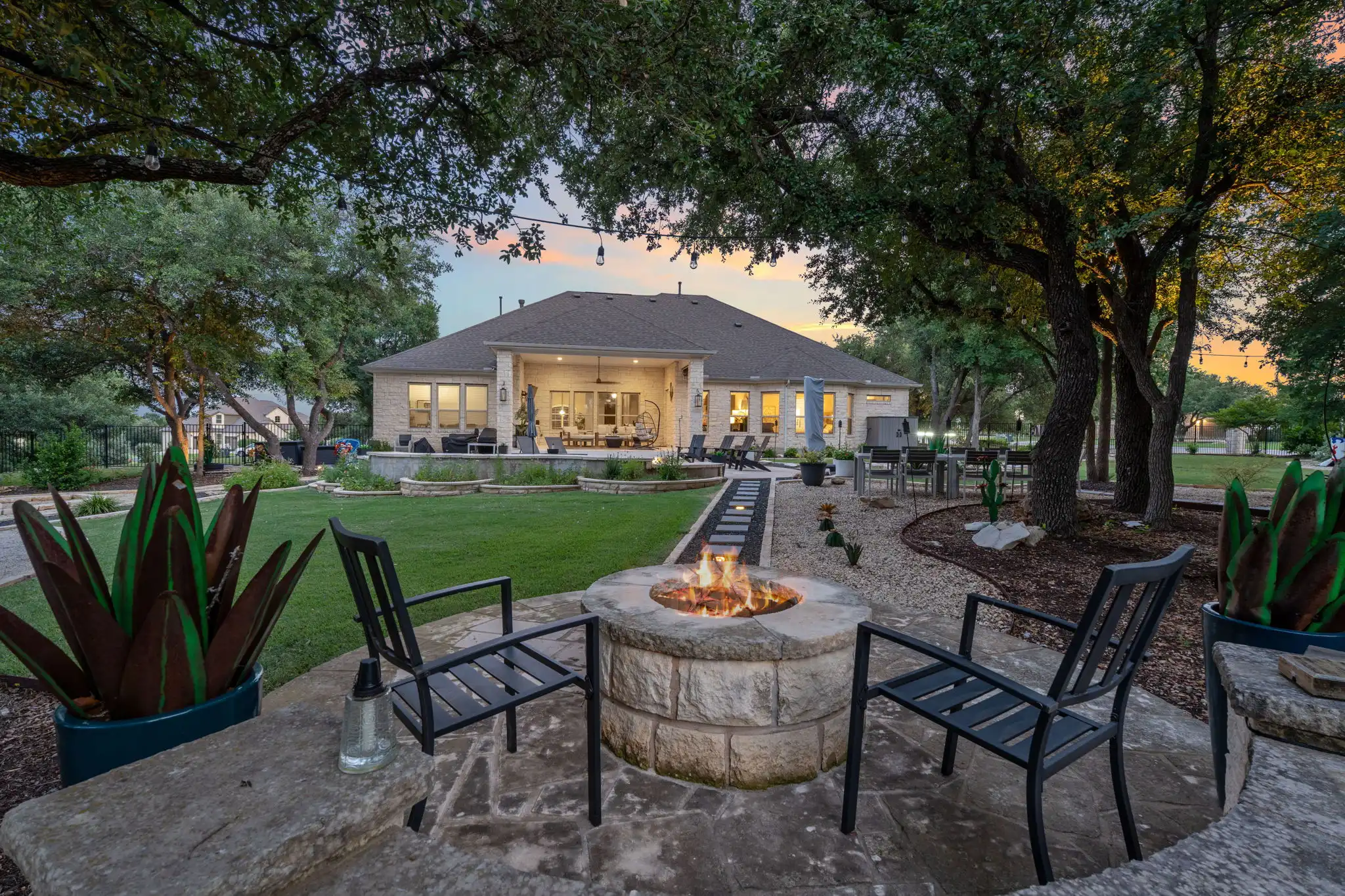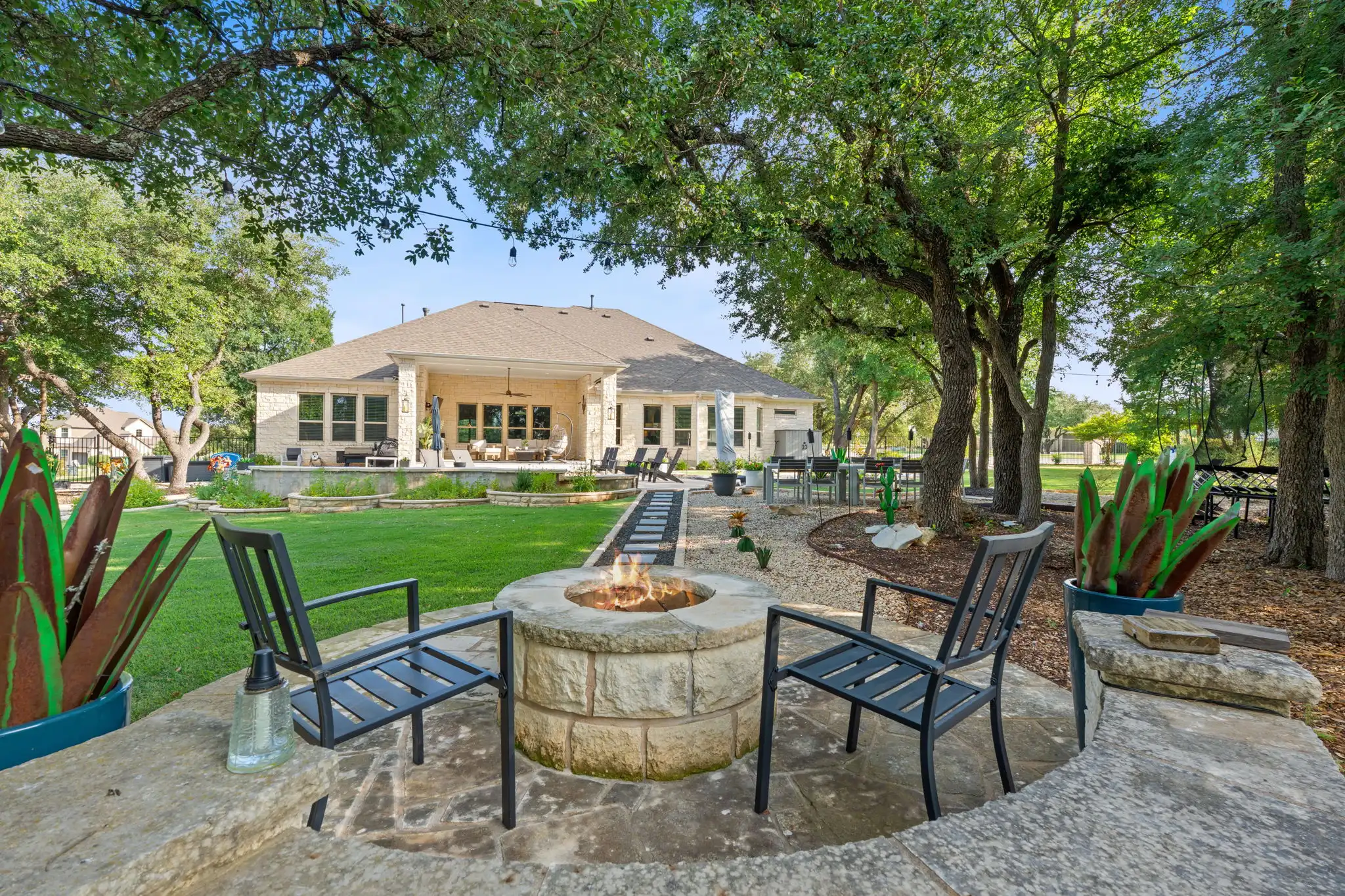 The real magic happens outdoors with resort-style living: expansive covered patio, private pool, custom stone firepit with curved seating, outdoor refrigerator, and professional landscaping with mature shade trees and custom lighting. There is a full irrigation system - making maintaining this yard a breeze. This is where every day feels like a vacation without leaving home. This magazine-worthy residence is the epitome of refined Texas living—where exceptional design, everyday functionality, and timeless beauty come together in Woodland Park's most peaceful setting. Homes like this rarely come along. Don't sleep on this one.