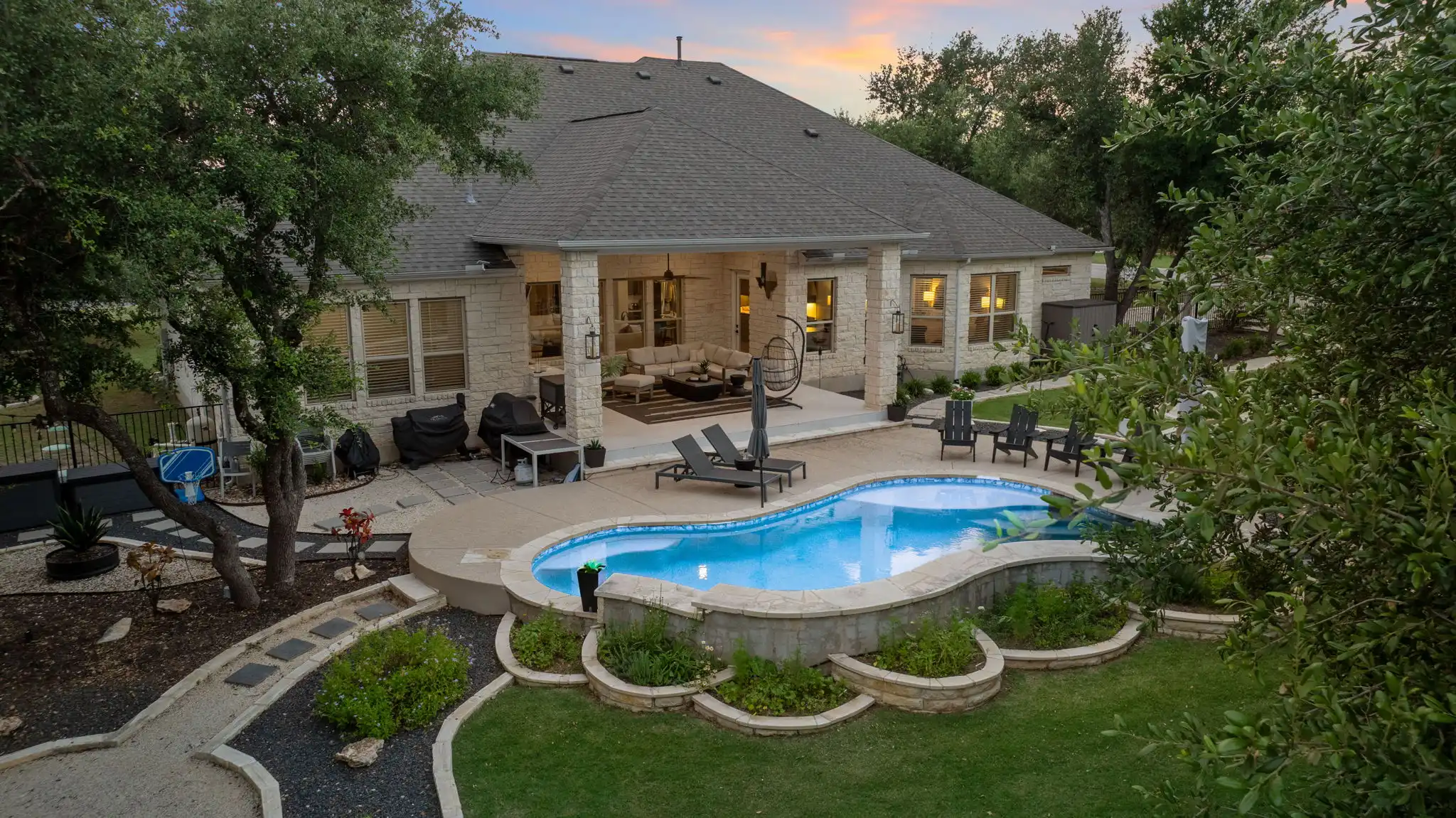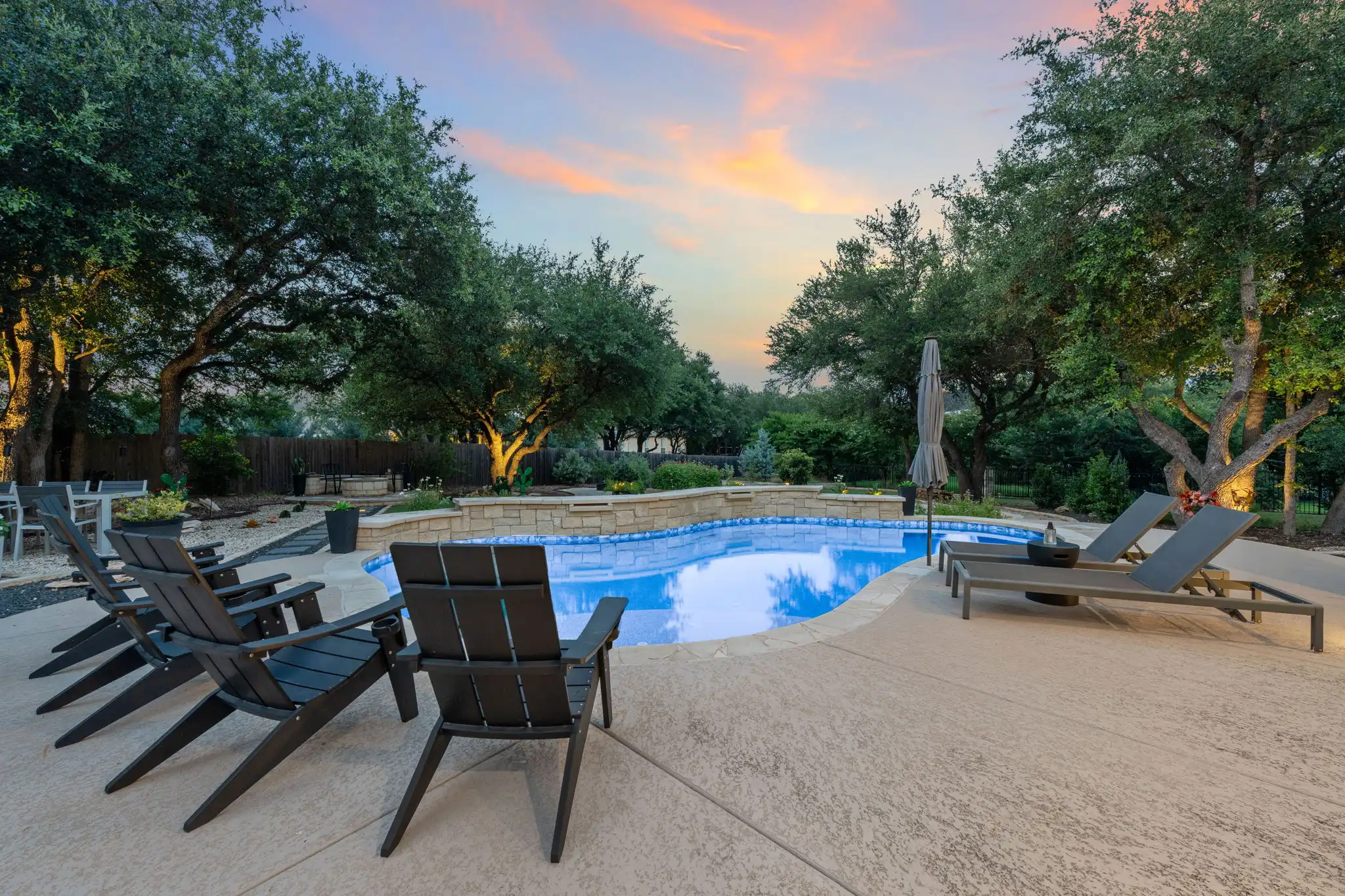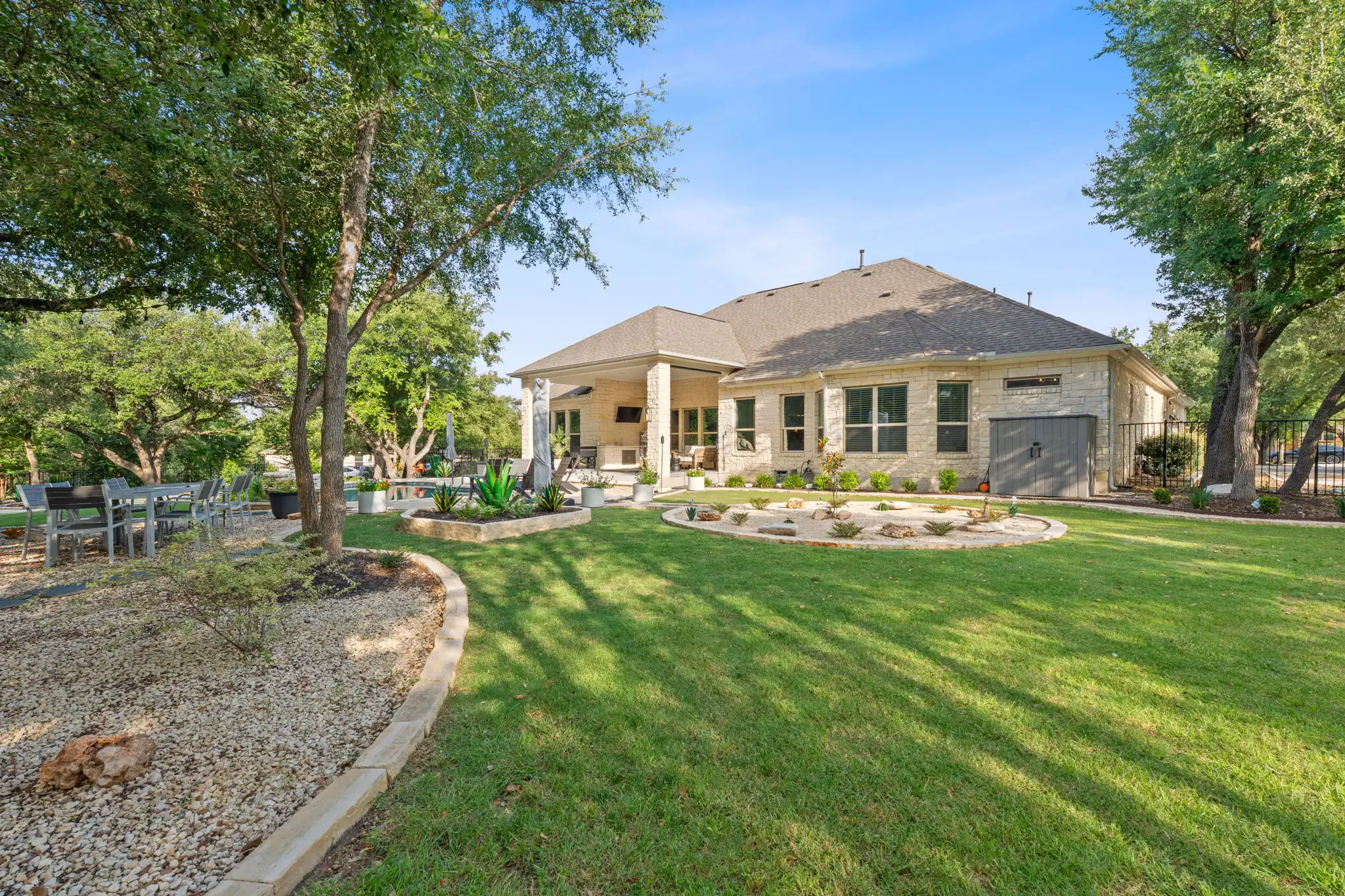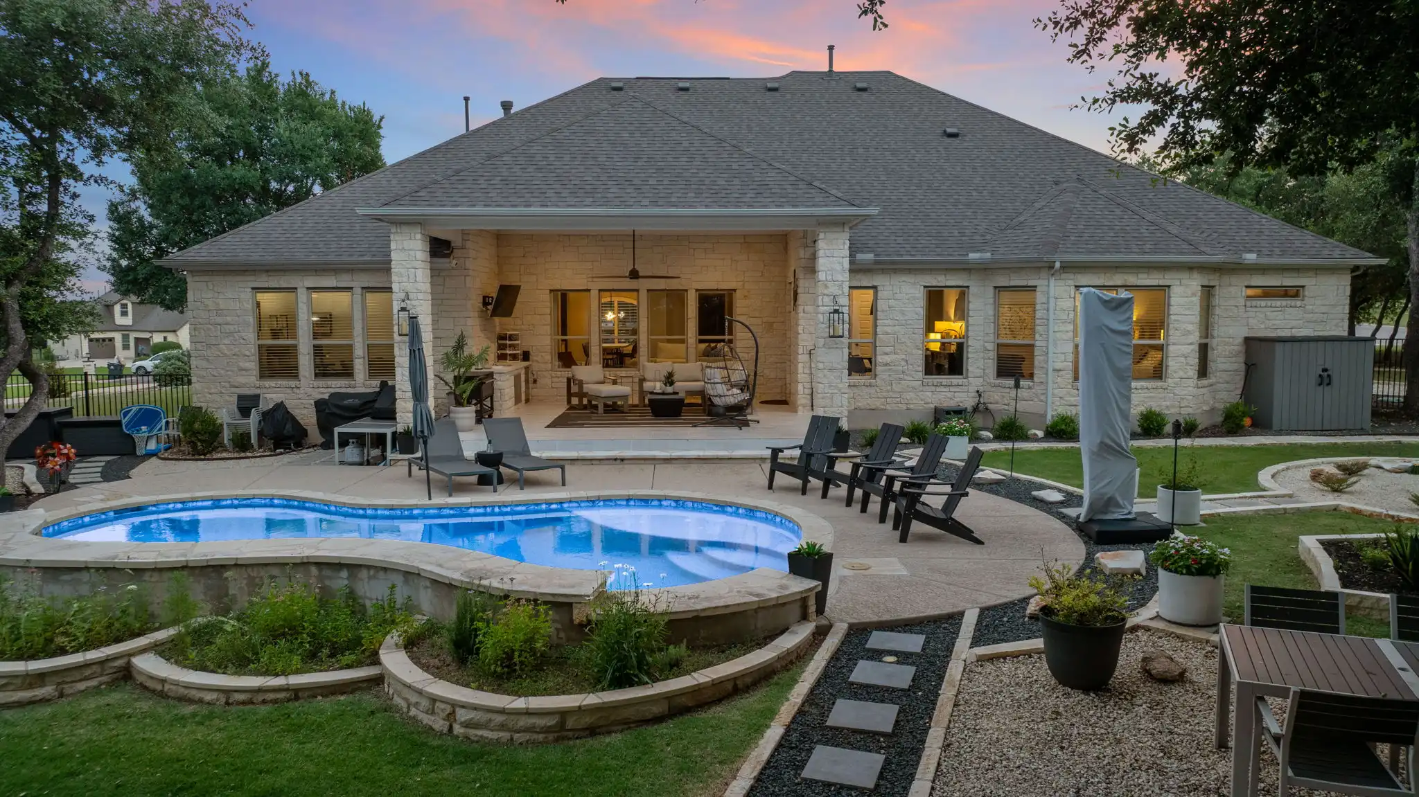 The real magic happens outdoors with resort-style living: expansive covered patio, private pool, custom stone firepit with curved seating, outdoor refrigerator, and professional landscaping with mature shade trees and custom lighting. There is a full irrigation system - making maintaining this yard a breeze. This is where every day feels like a vacation without leaving home. This magazine-worthy residence is the epitome of refined Texas living—where exceptional design, everyday functionality, and timeless beauty come together in Woodland Park's most peaceful setting. Homes like this rarely come along. Don't sleep on this one.