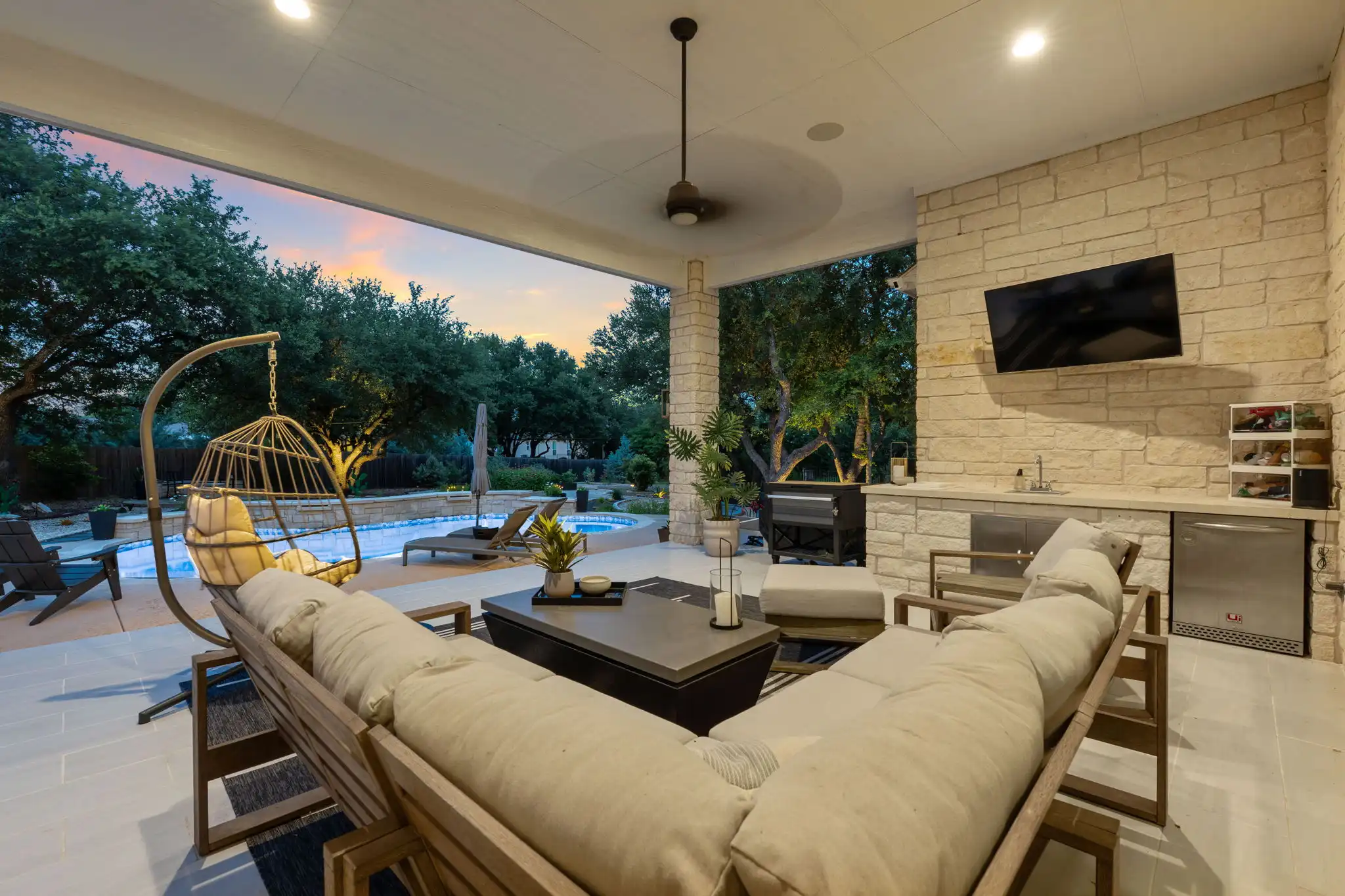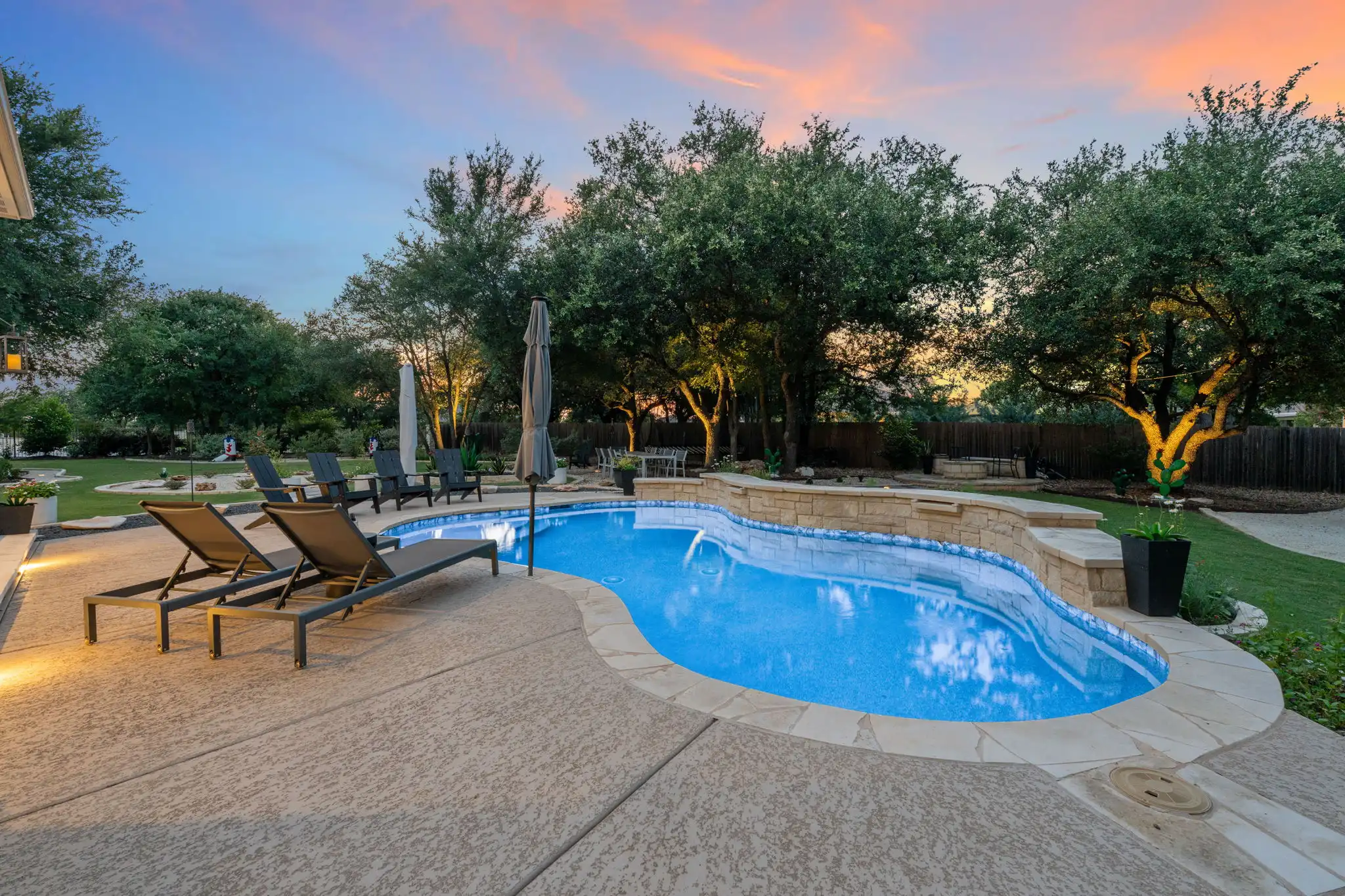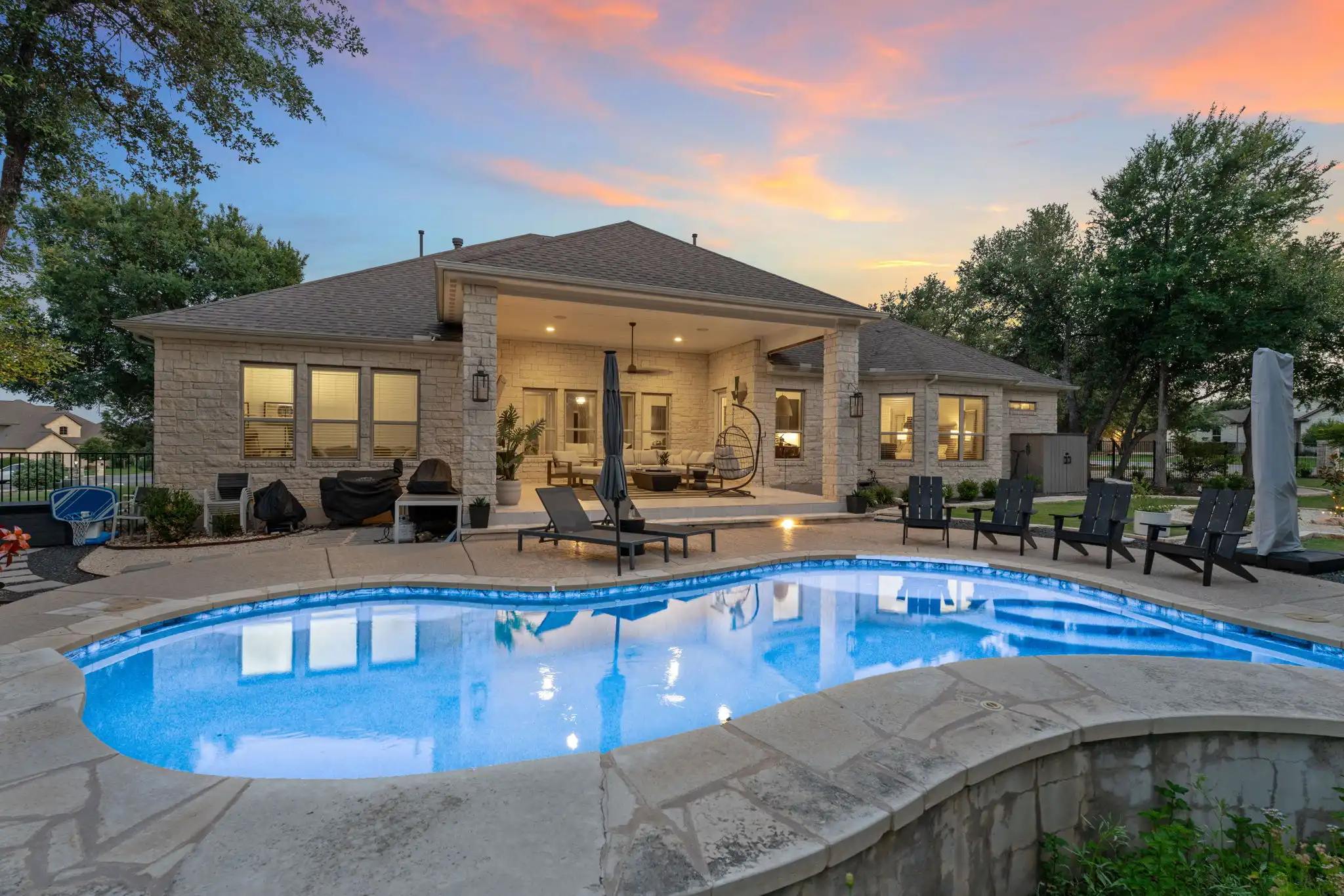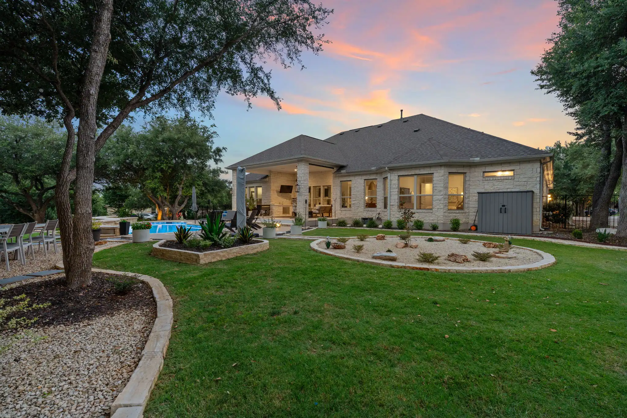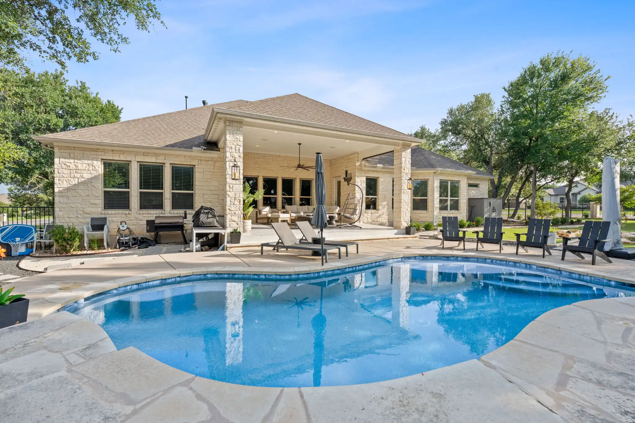 The real magic happens outdoors with resort-style living: expansive covered patio, private pool, custom stone firepit with curved seating, outdoor refrigerator, and professional landscaping with mature shade trees and custom lighting. There is a full irrigation system - making maintaining this yard a breeze. This is where every day feels like a vacation without leaving home. This magazine-worthy residence is the epitome of refined Texas living—where exceptional design, everyday functionality, and timeless beauty come together in Woodland Park's most peaceful setting. Homes like this rarely come along. Don't sleep on this one.