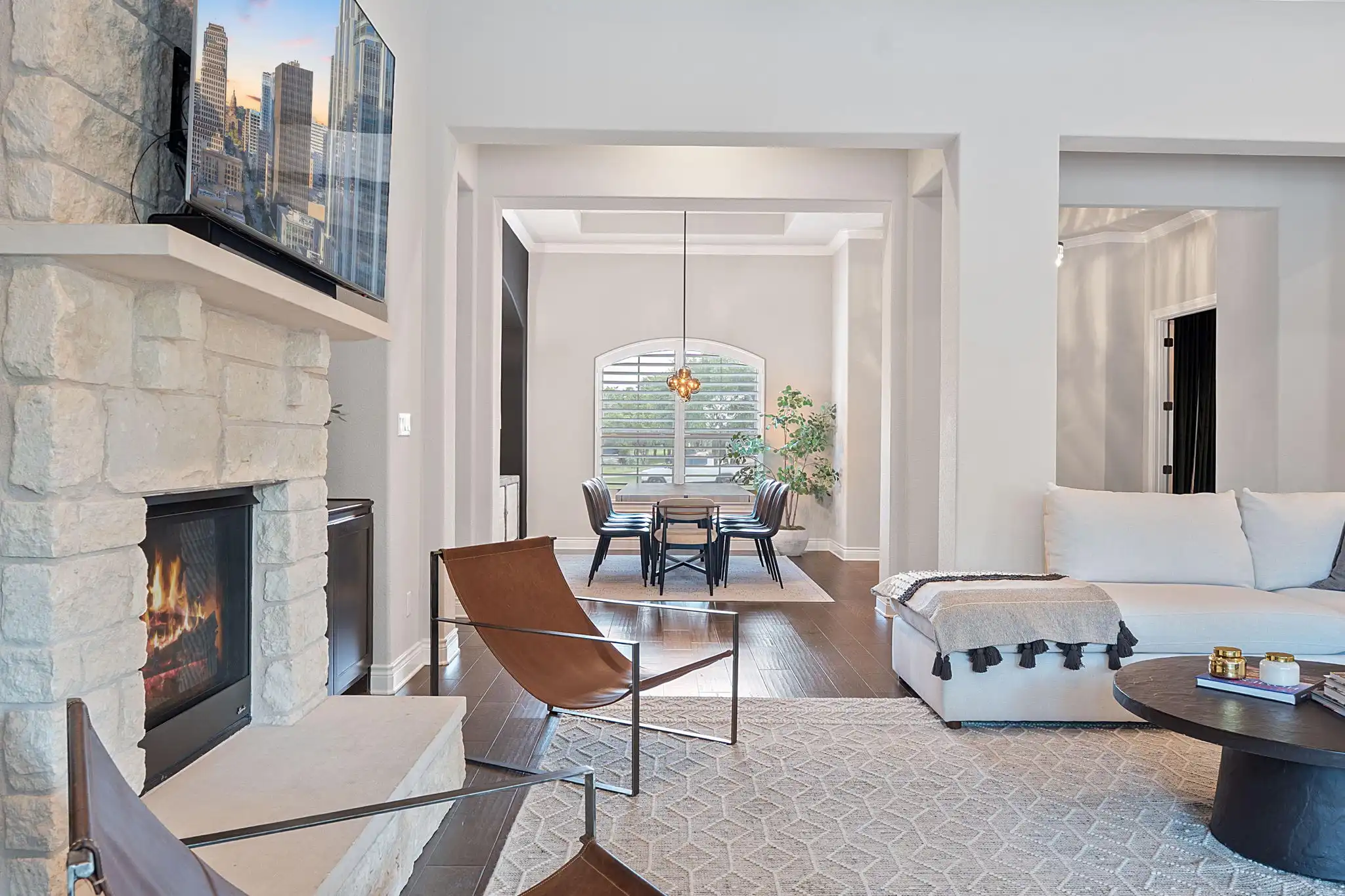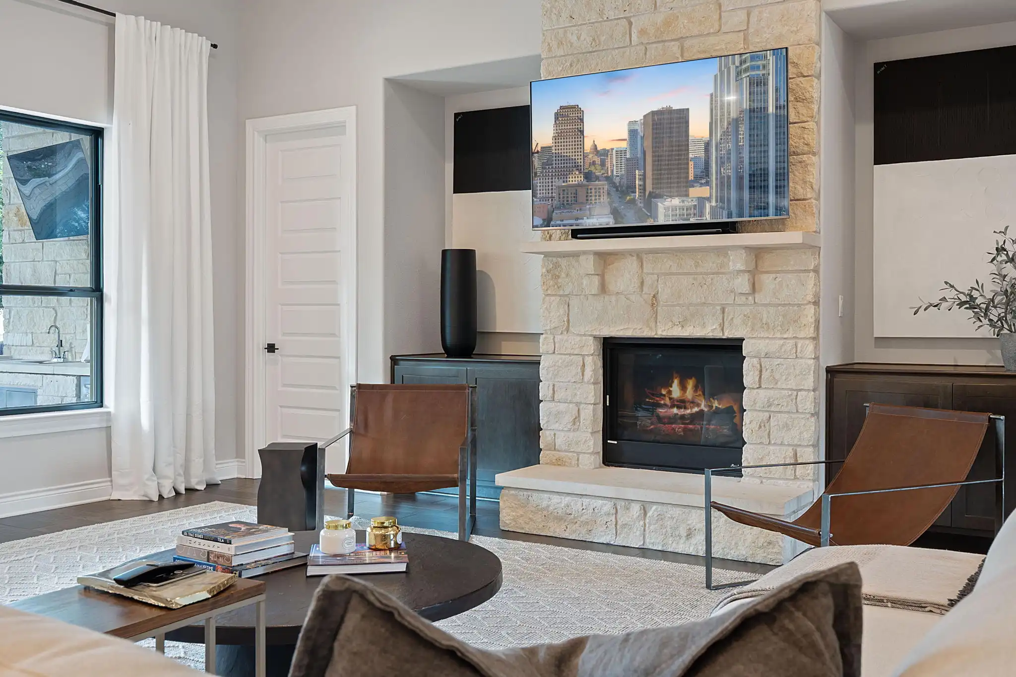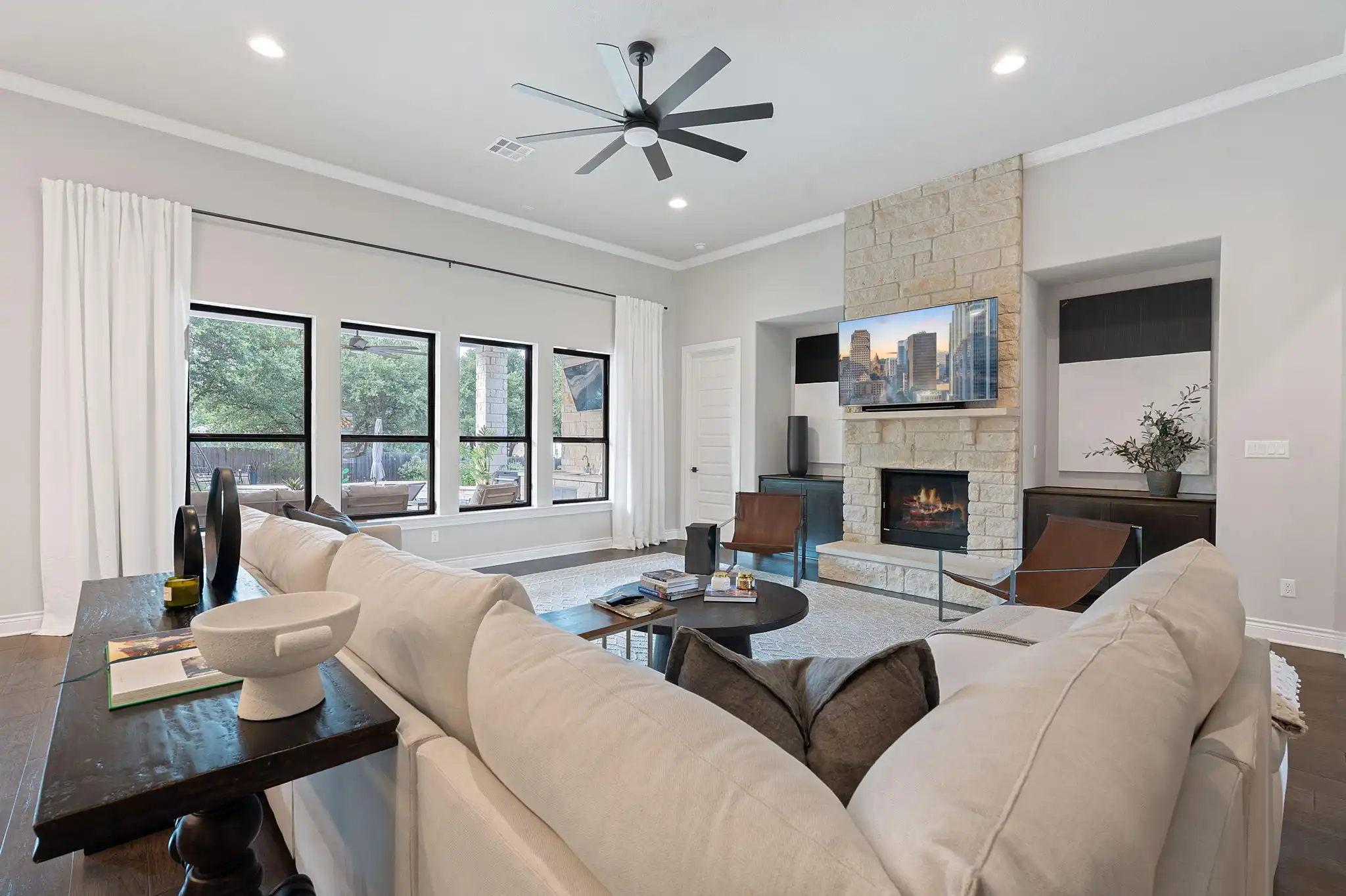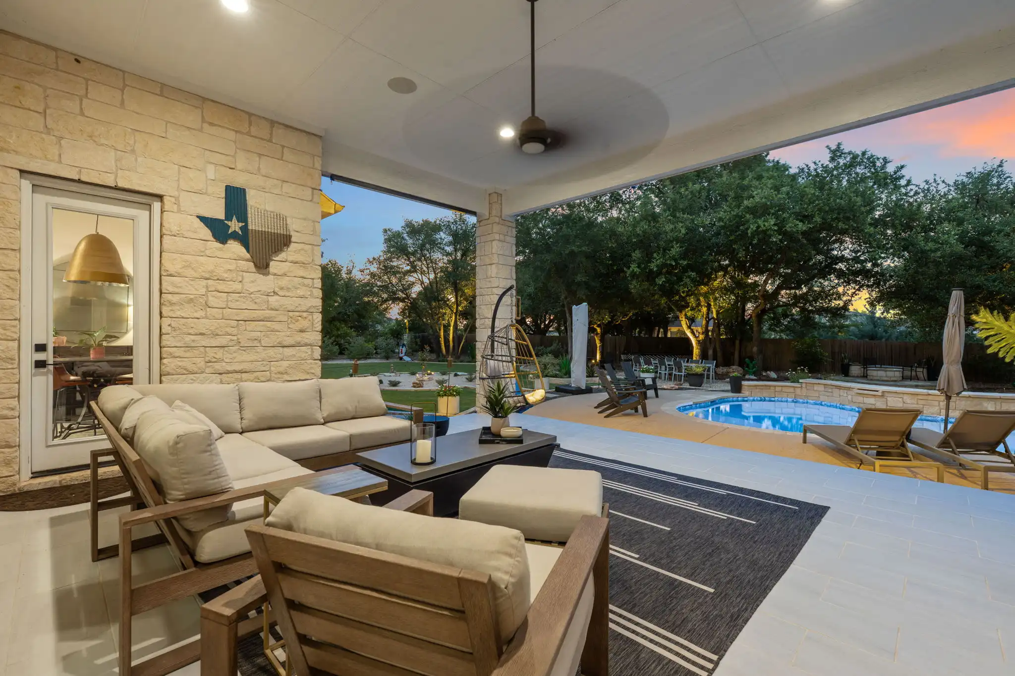 The real magic happens outdoors with resort-style living: expansive covered patio, private pool, custom stone firepit with curved seating, outdoor refrigerator, and professional landscaping with mature shade trees and custom lighting. There is a full irrigation system - making maintaining this yard a breeze. This is where every day feels like a vacation without leaving home. This magazine-worthy residence is the epitome of refined Texas living—where exceptional design, everyday functionality, and timeless beauty come together in Woodland Park's most peaceful setting. Homes like this rarely come along. Don't sleep on this one.