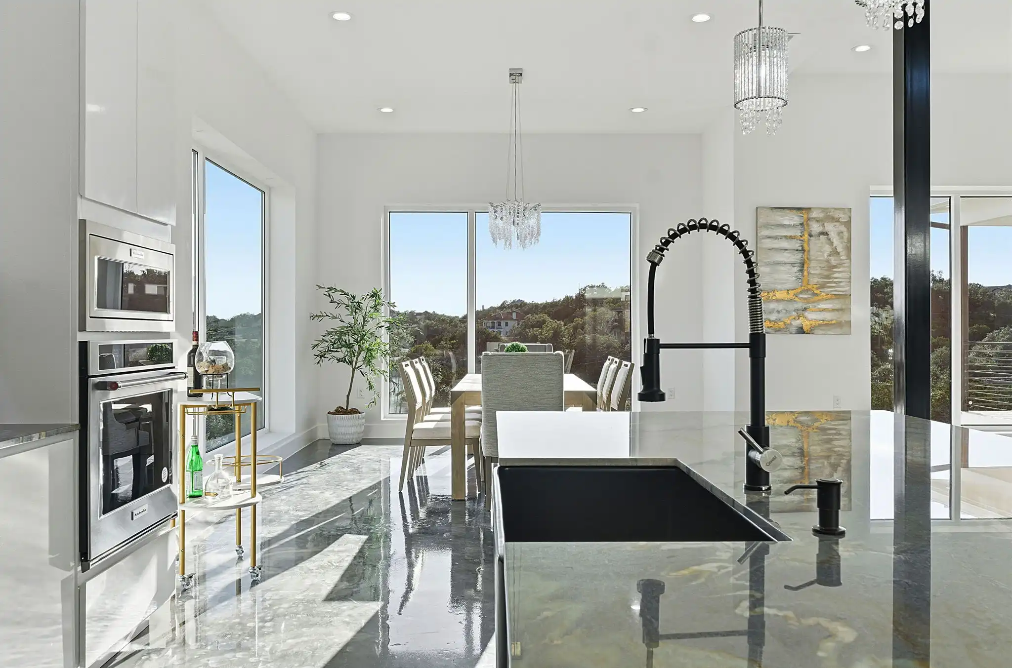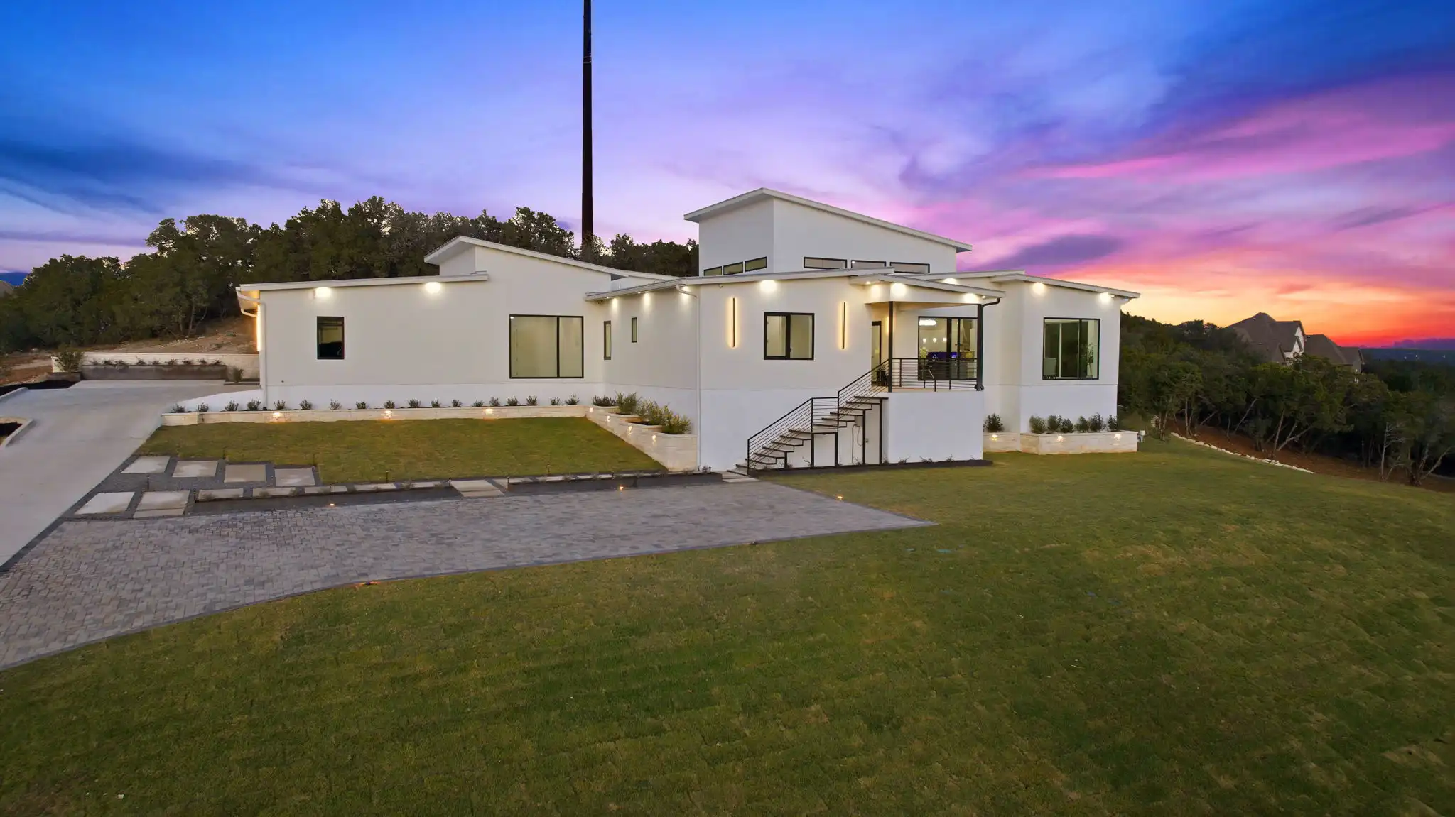 From the moment you arrive, the homes scale and presence are unmistakable. Nearly 5,000 square feet of thoughtfully designed living unfold effortlessly atop a hill, featuring light-filled interiors, clean, modern lines, and a seamless connection between indoor and outdoor living. Expansive windows frame Hill Country vistas and capture breathtaking sunsets, while the architecture feels striking by day and warmly inviting by night.