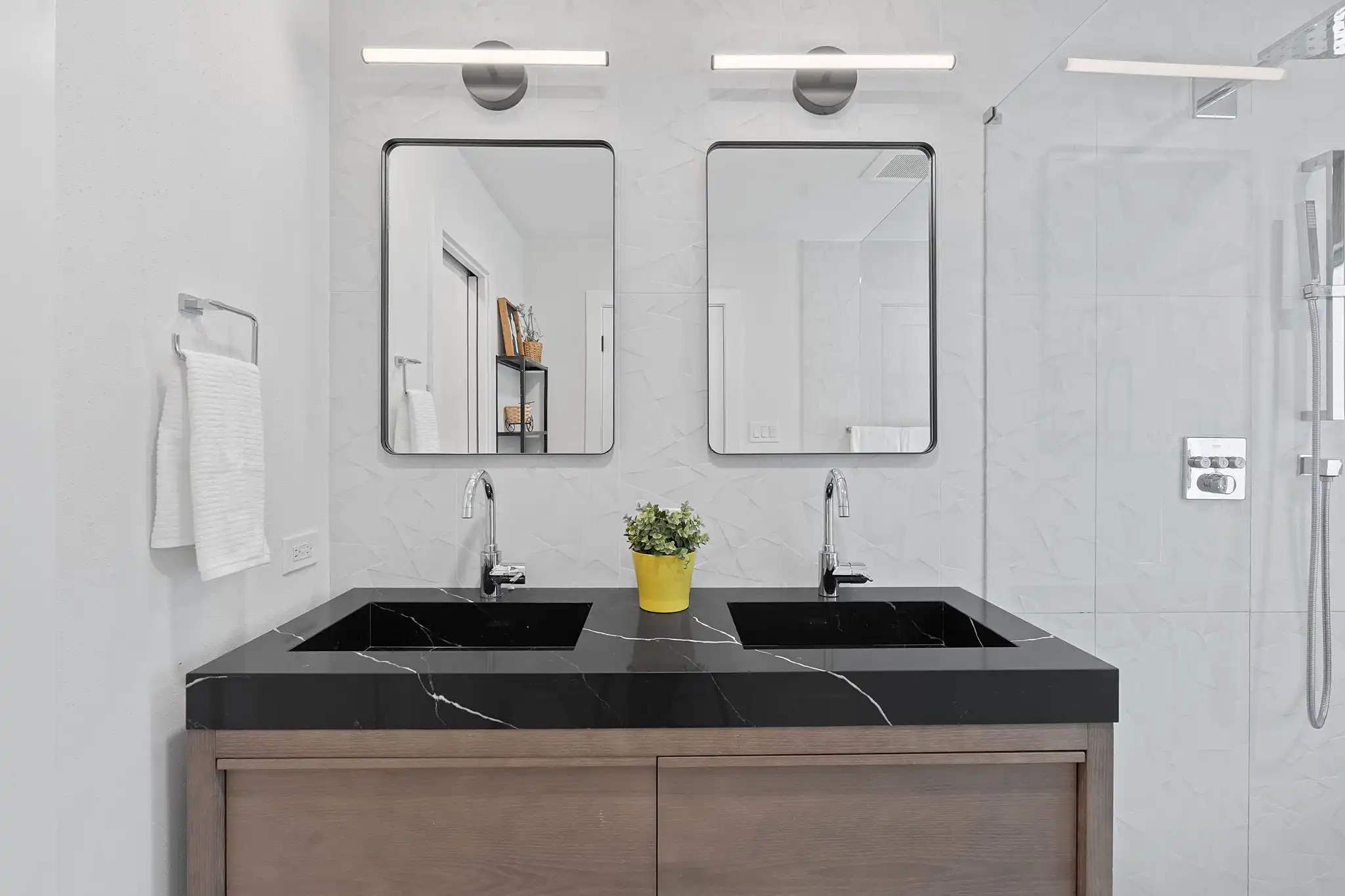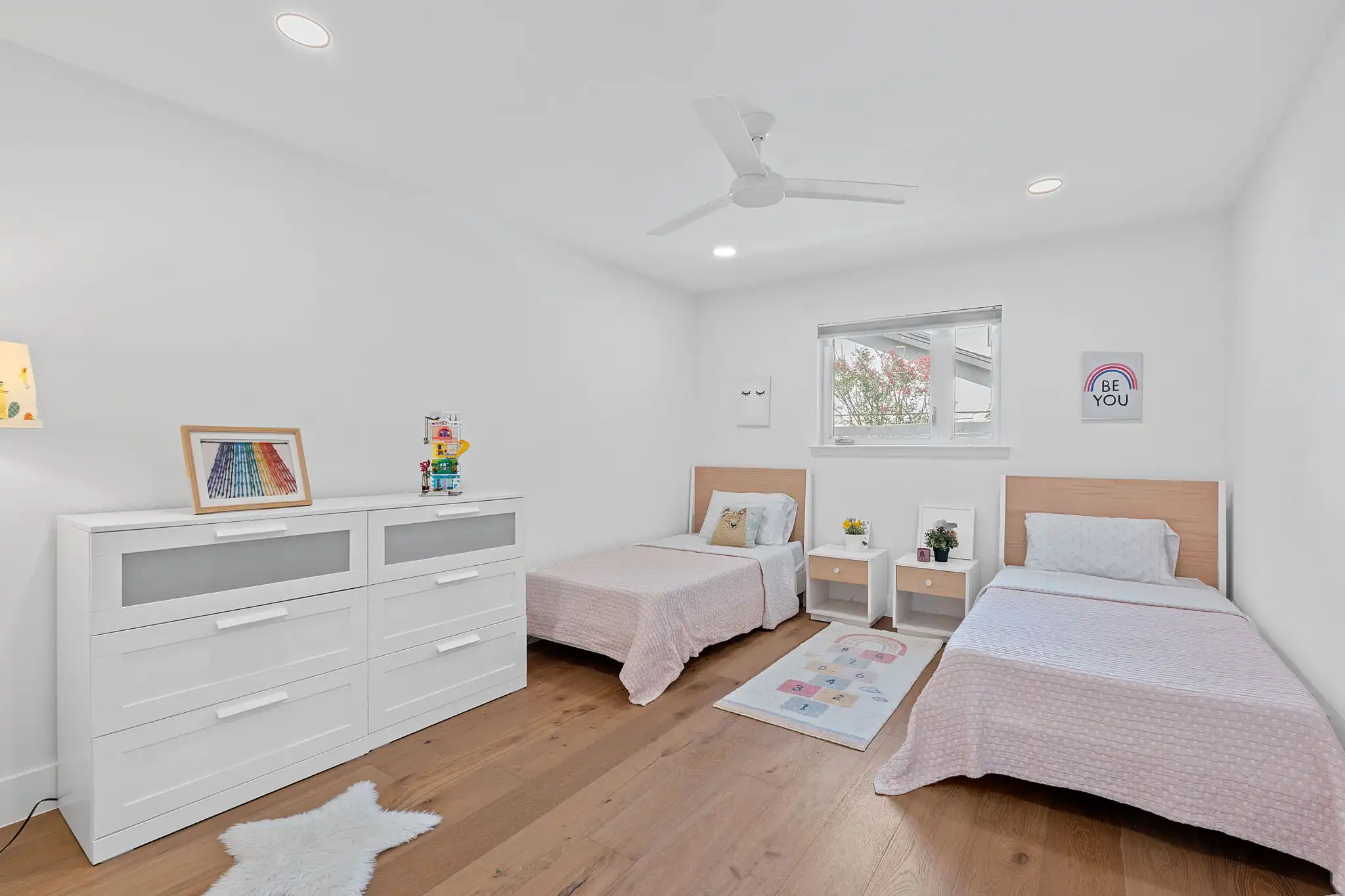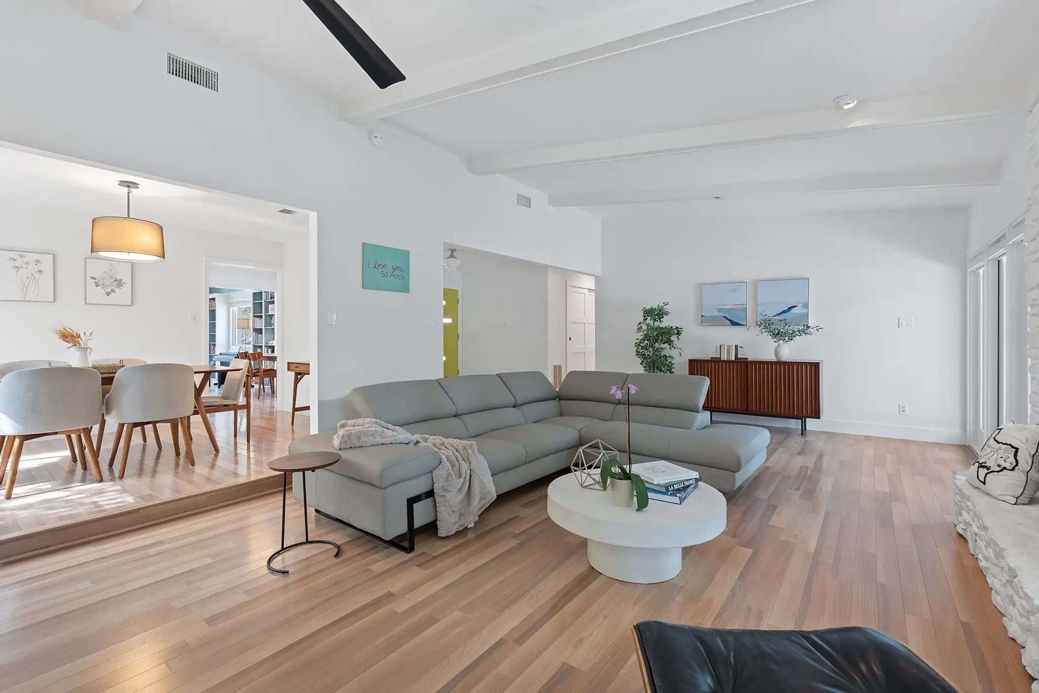 Step inside to find four generously sized bedrooms complemented by thoughtful storage solutions, designed to suit the needs of modern living. The beautifully remodeled kitchen is a culinary masterpiece, featuring top-of-the-line KitchenAid appliances, custom cabinetry, sleek quartz countertops, a designer backsplash, and contemporary hardware – an ideal space for everyday living and entertaining.