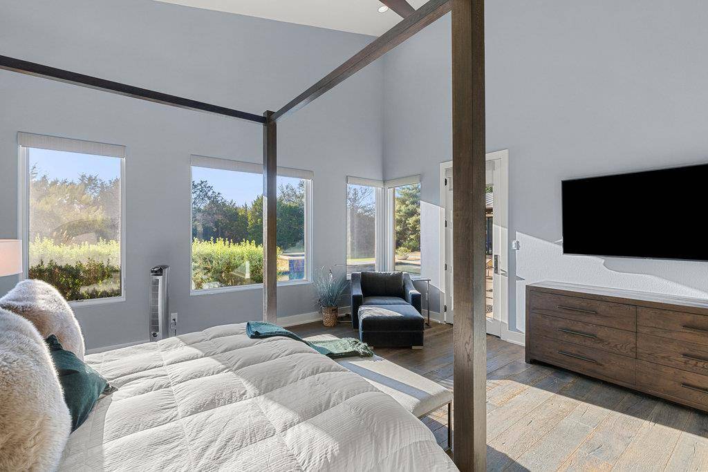 The gently lived-in second home has been loved and enjoyed by this family for the last 6.5 years. Don't miss an opportunity for a premier Barton Creek spot that offers so much! This .93acre property is nestled on a quiet cul de sac street within Barton Creek's gated Verano neighborhood. A highly desirable one-story contemporary residence, it is one of the smaller homes in the neighborhood and artfully blends architectural precision with effortless livability. Clad in geometrically cut limestone with Brazilian Ipe accents the design exudes refined modern warmth both inside and out. A stunning open concept island kitchen anchors the home, featuring Wolf and SubZero appliances, including a Sub-Zero wine refrigerator, ideal for the culinary enthusiast. Effortless entertaining European oak flooring flows seamlessly throughout expansive living spaces, highlighted by two fireplaces, soaring ceilings, and abundant natural light from walls of windows throughout. The main residence features 3 spacious bedrooms and 3.5 baths, while a separate casita provides an exceptional guest space with the 4th bedroom and bath that could also serve as a private office or gym. The square footage is spread evenly throughout this thoughtfully designed floor plan. The lush and private backyard evokes a resort-style atmosphere with a sun splashed pool and spa surrounded by nearly 1000sqft of covered outdoor living, complete with an outdoor kitchen that's perfect for entertaining. Set on a sprawling .93acre lot, this property includes a generous three car garage outfitted with custom storage. A Property Owner's Barton Creek Country Club social membership is included with this property.